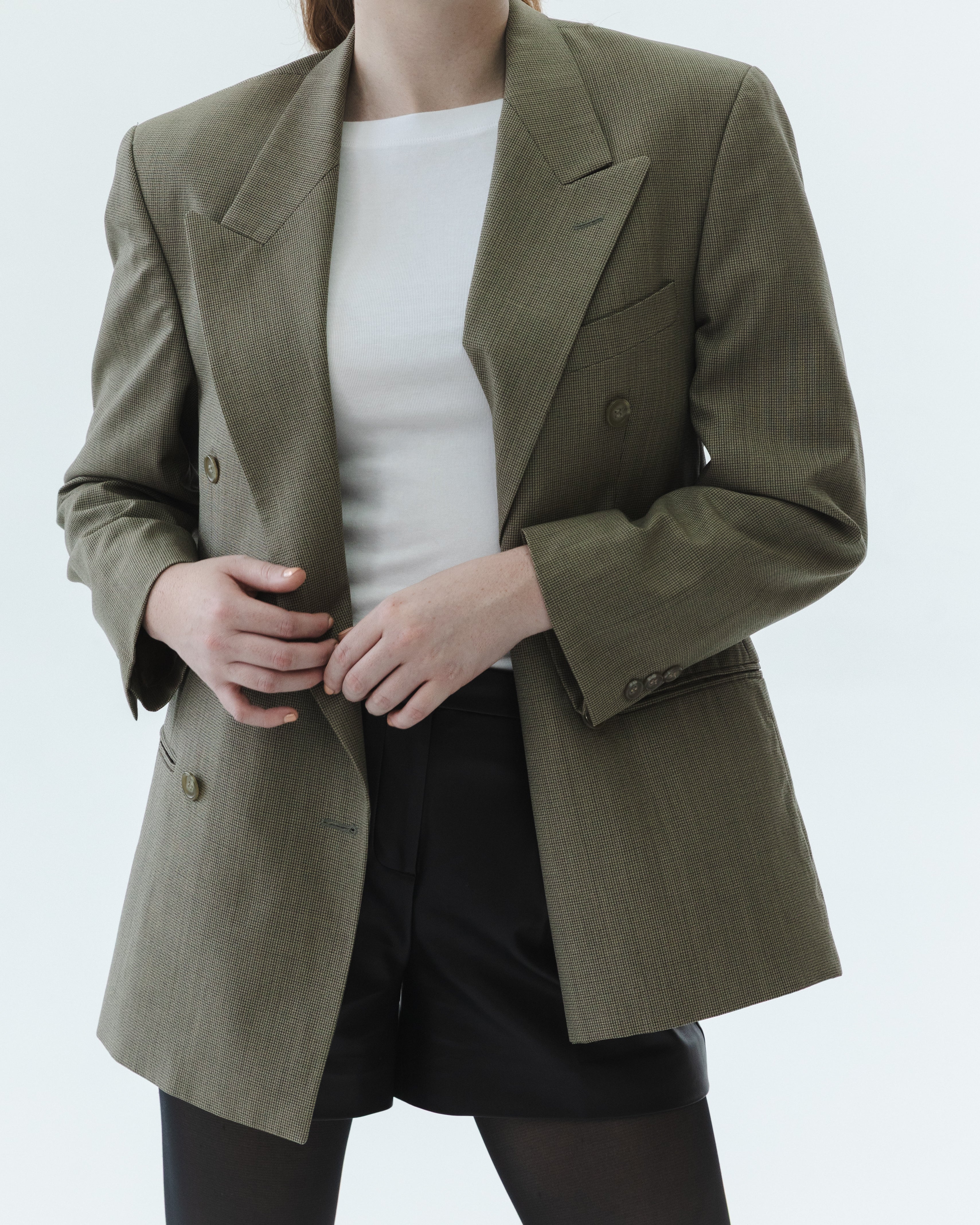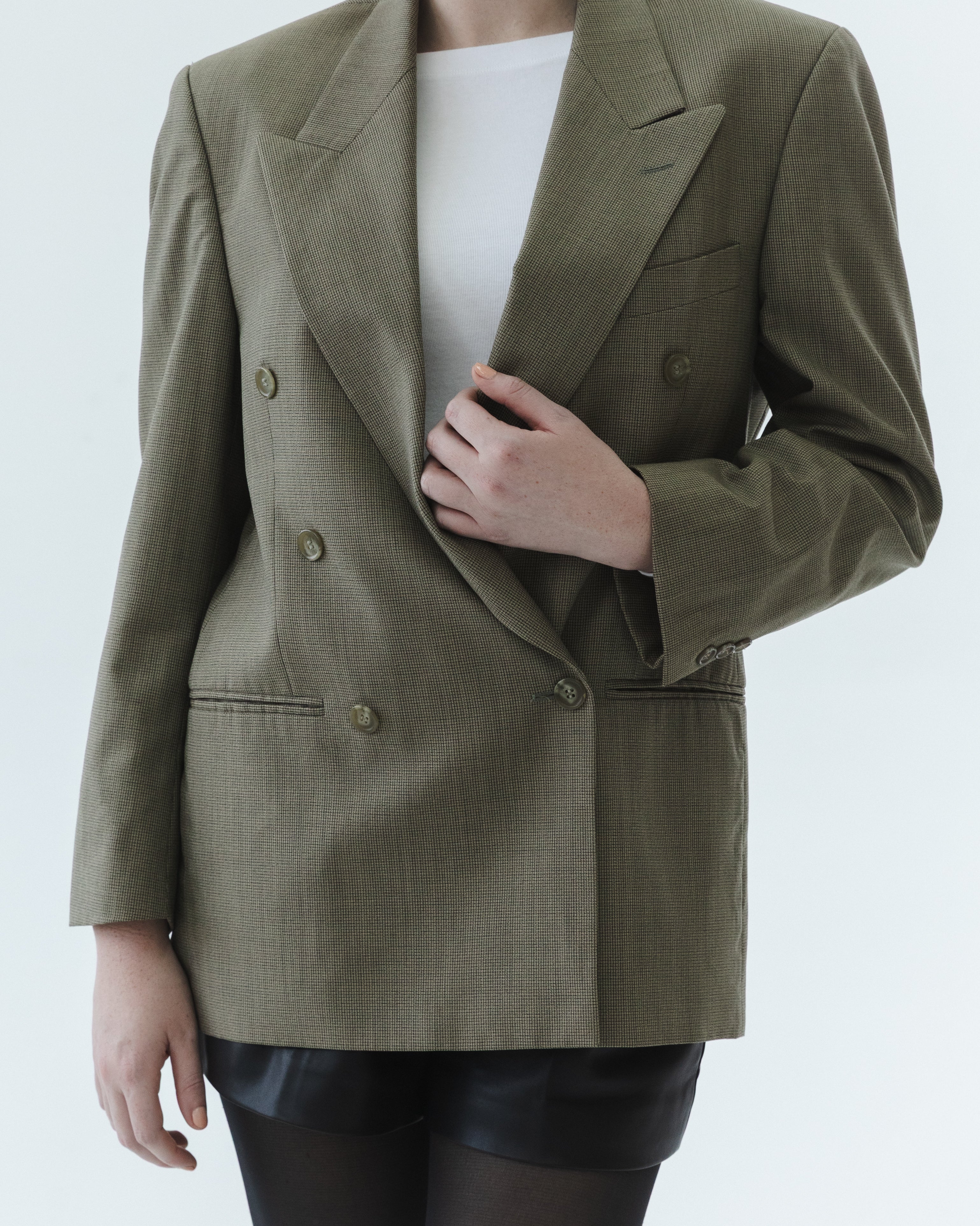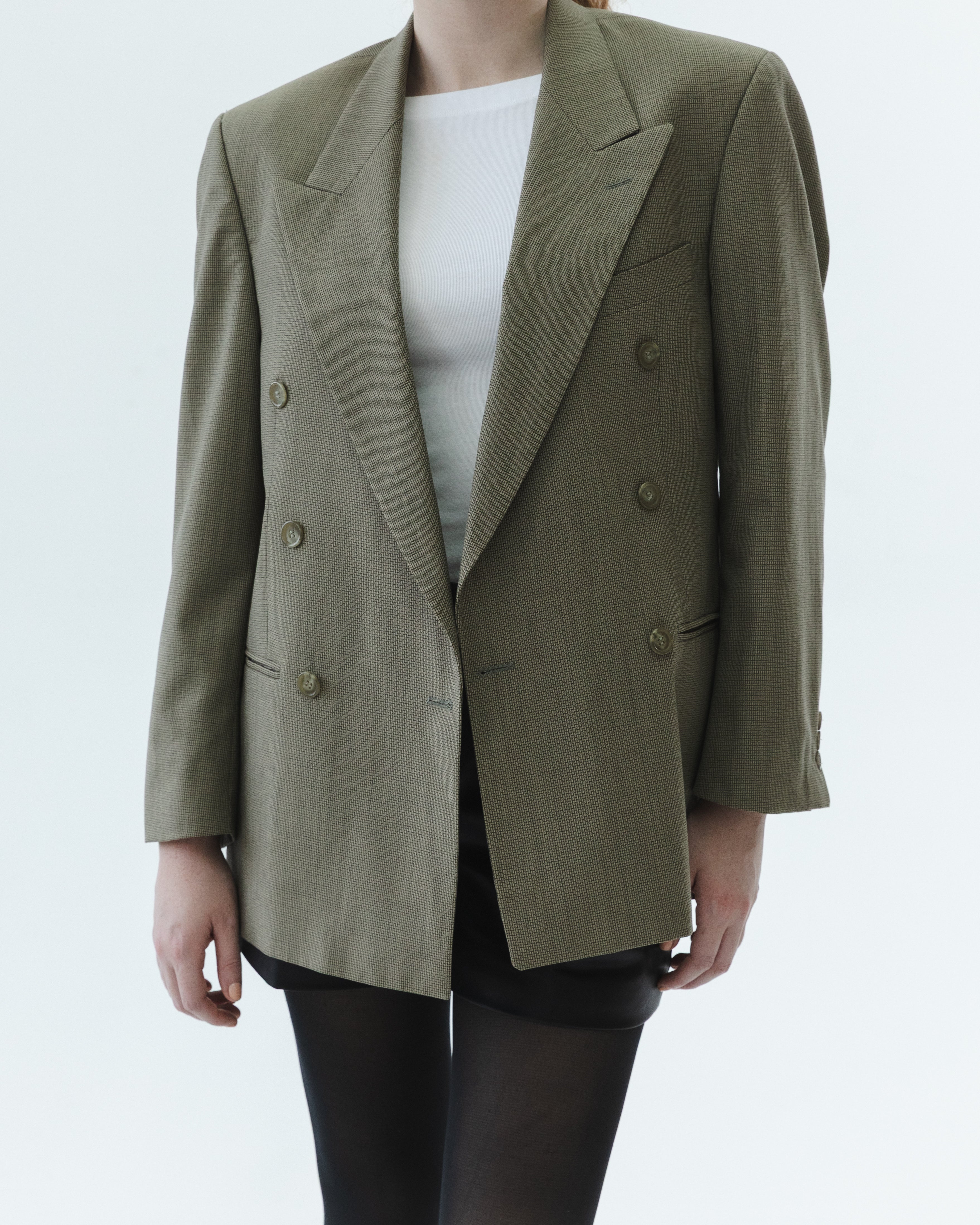 Gorgeous double breasted blazer in a neutral taupe color. Fully lined.