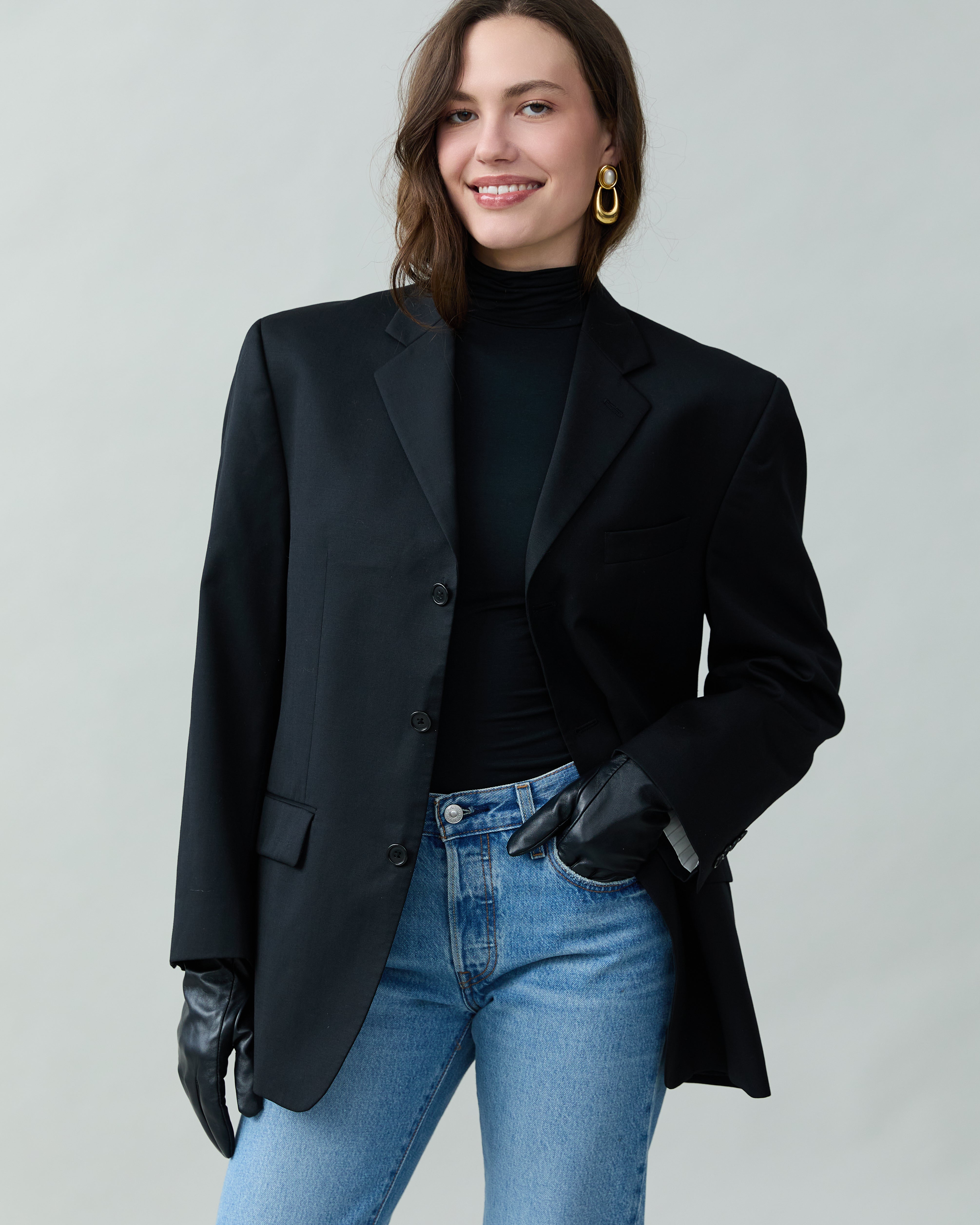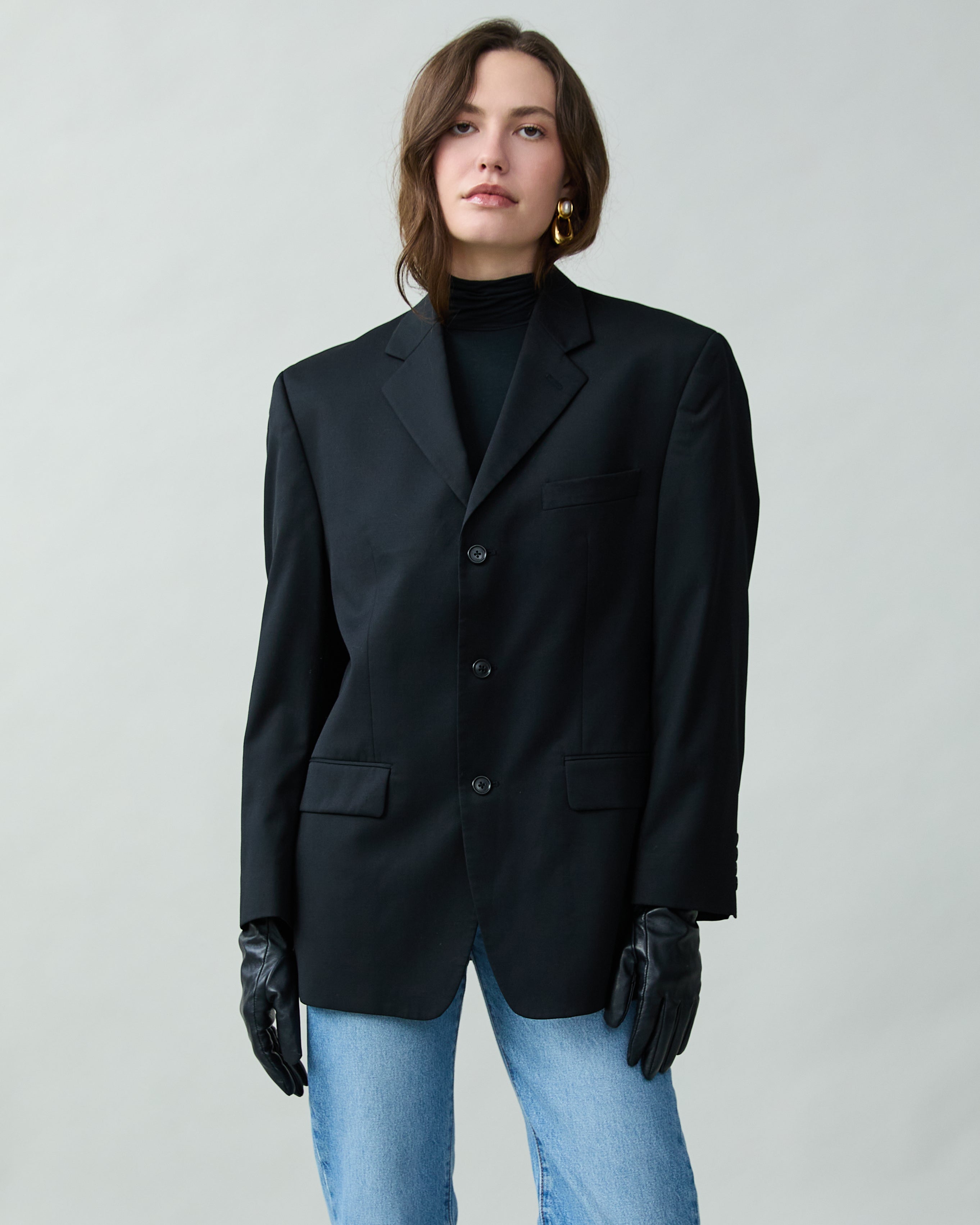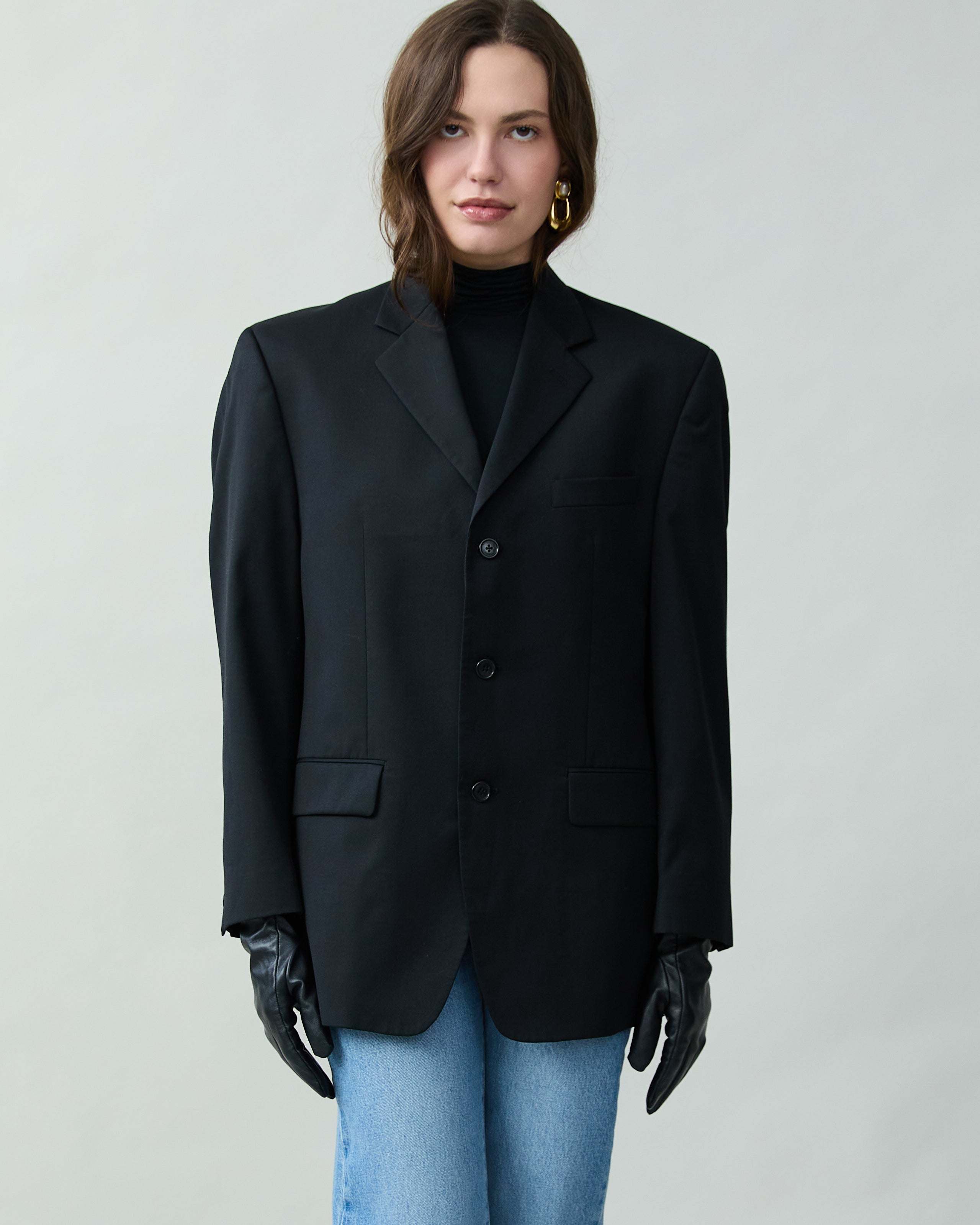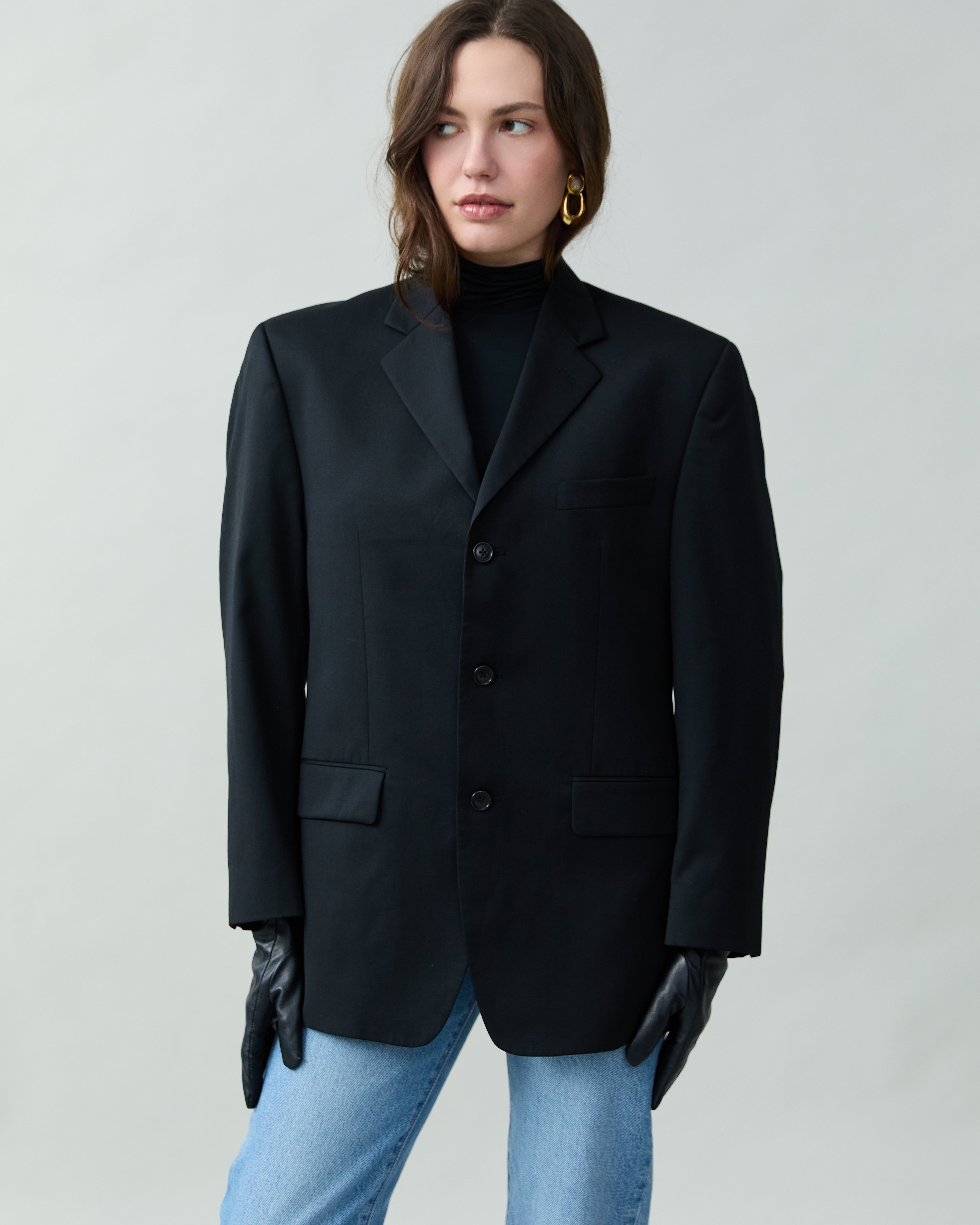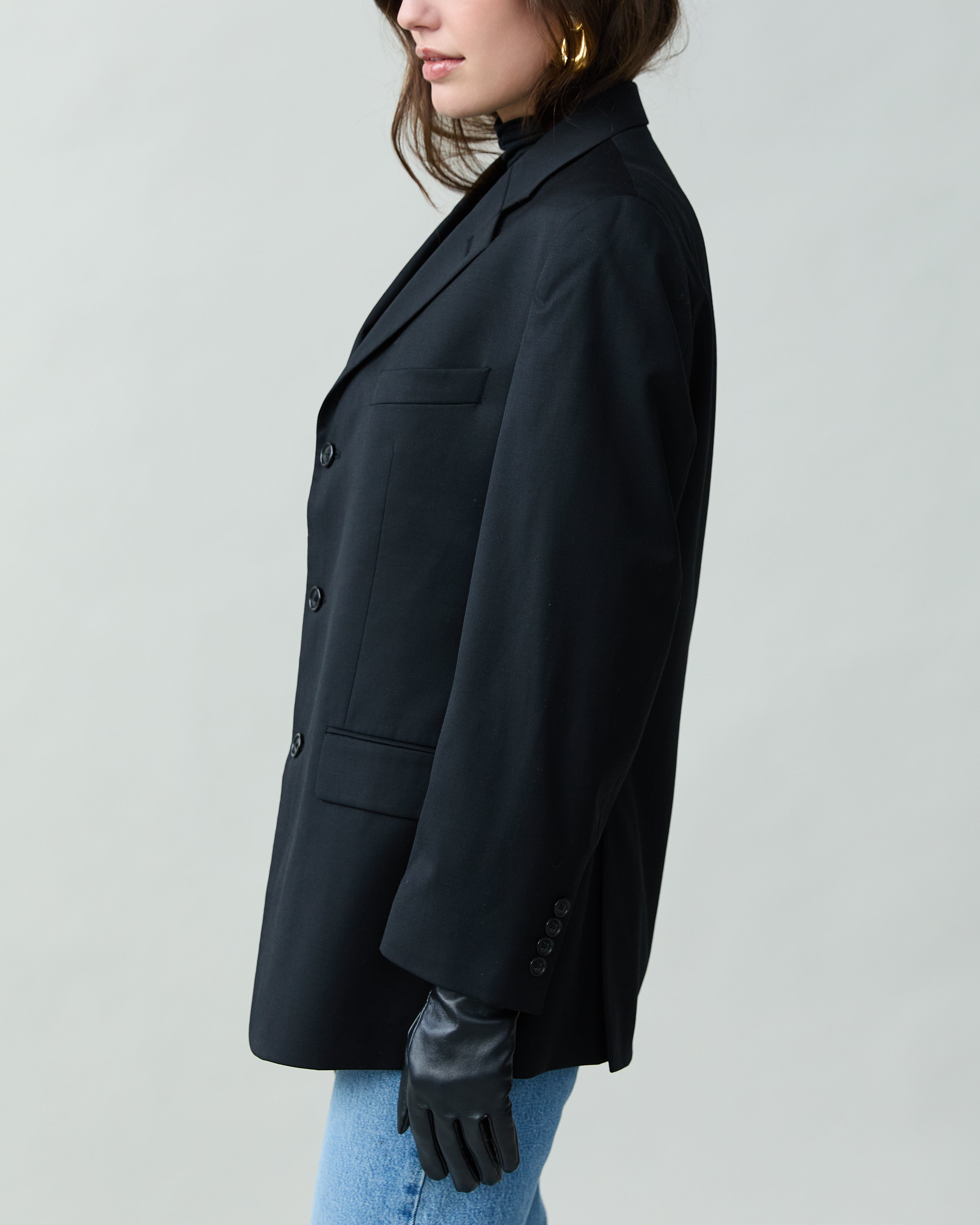 Vintage Sleek Wool Blazer in Black