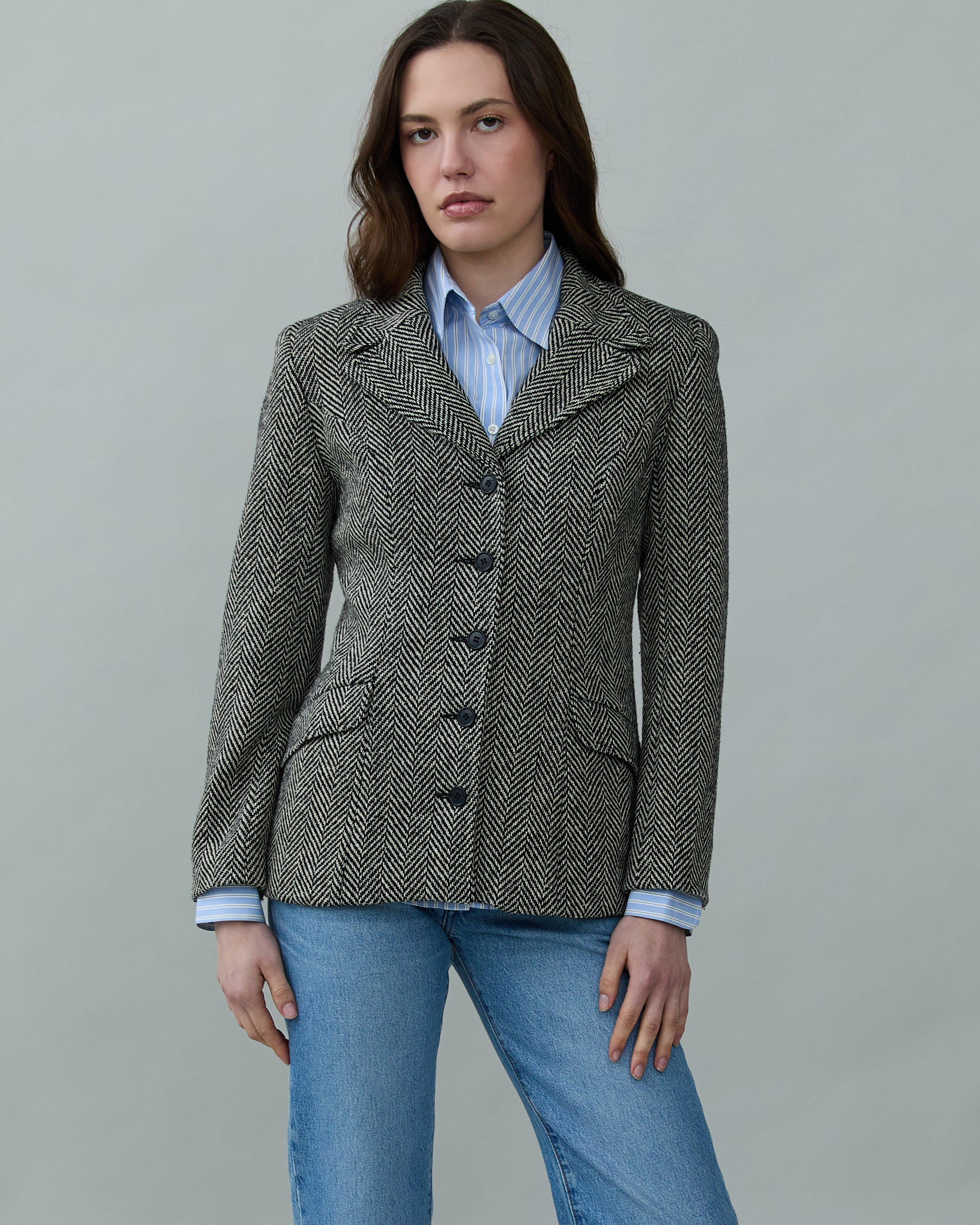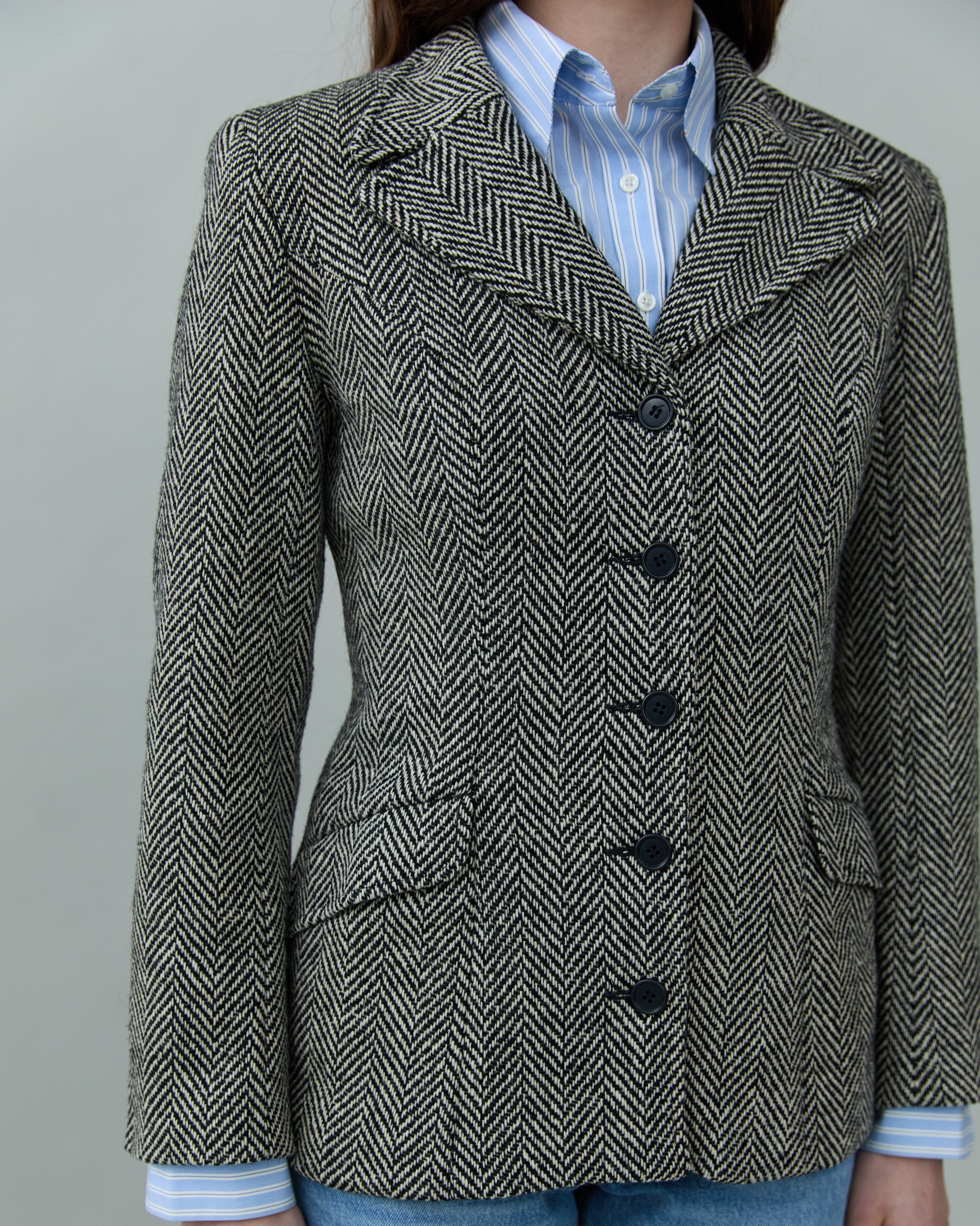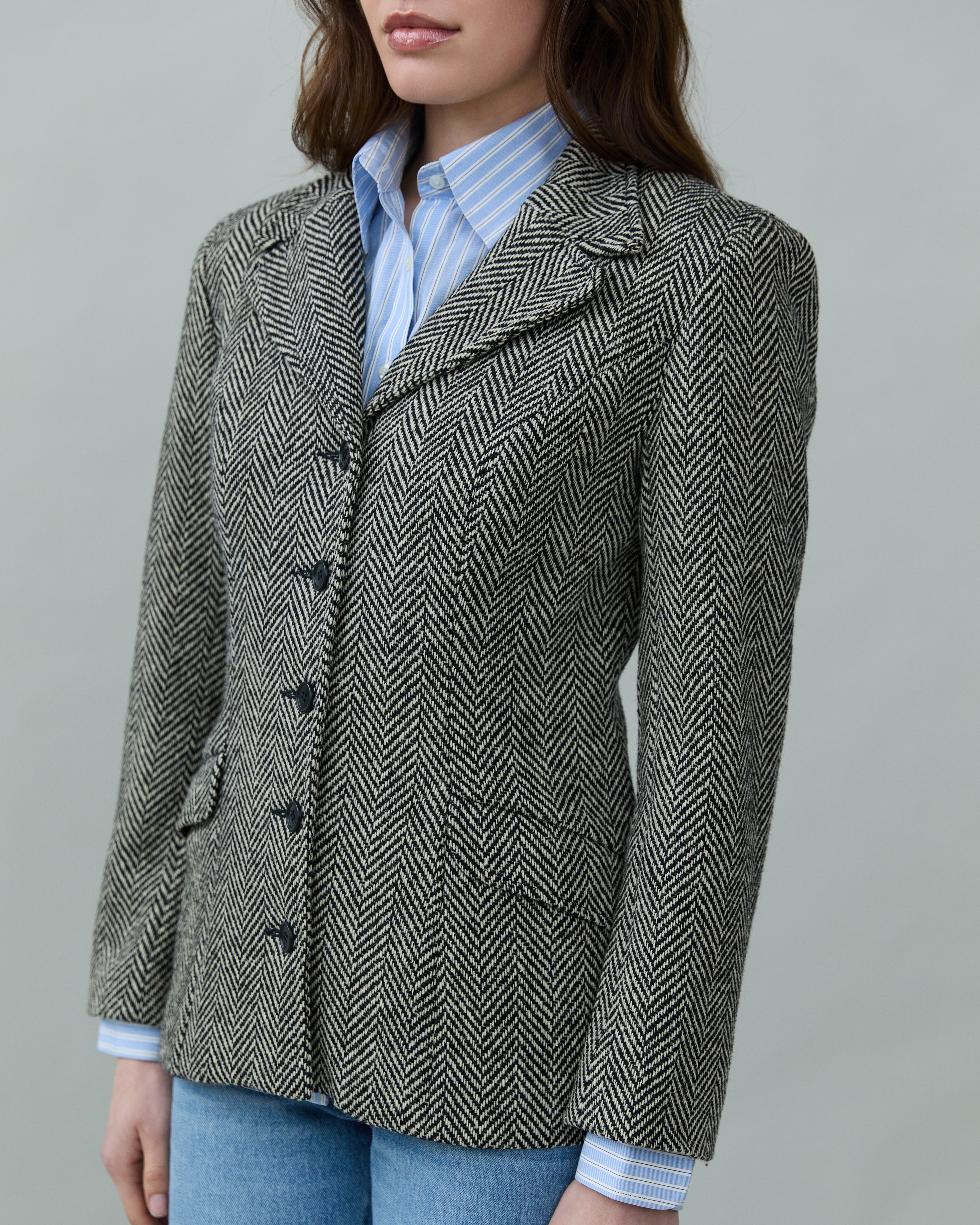 Vintage Fitted Waist Herringbone Blazer
