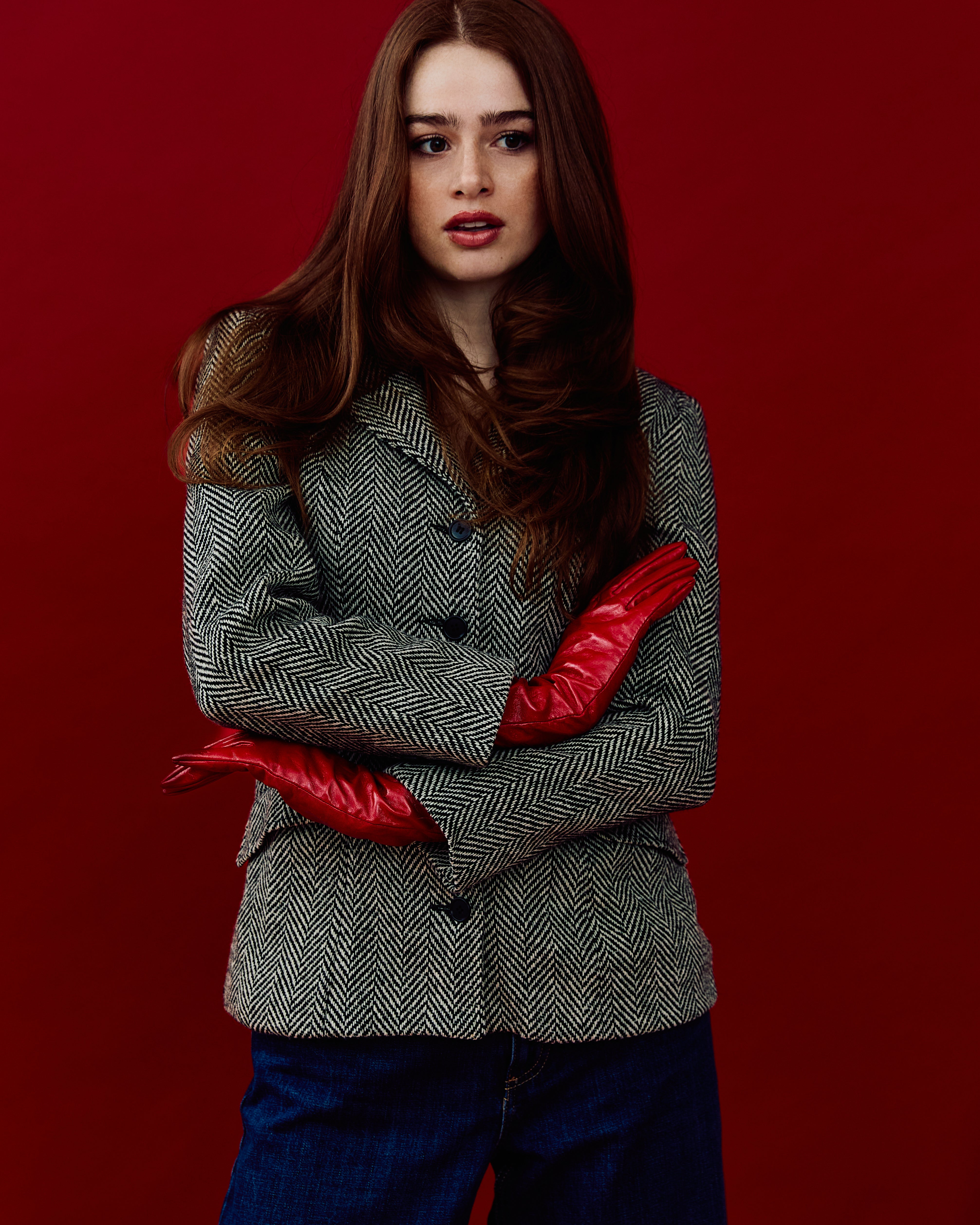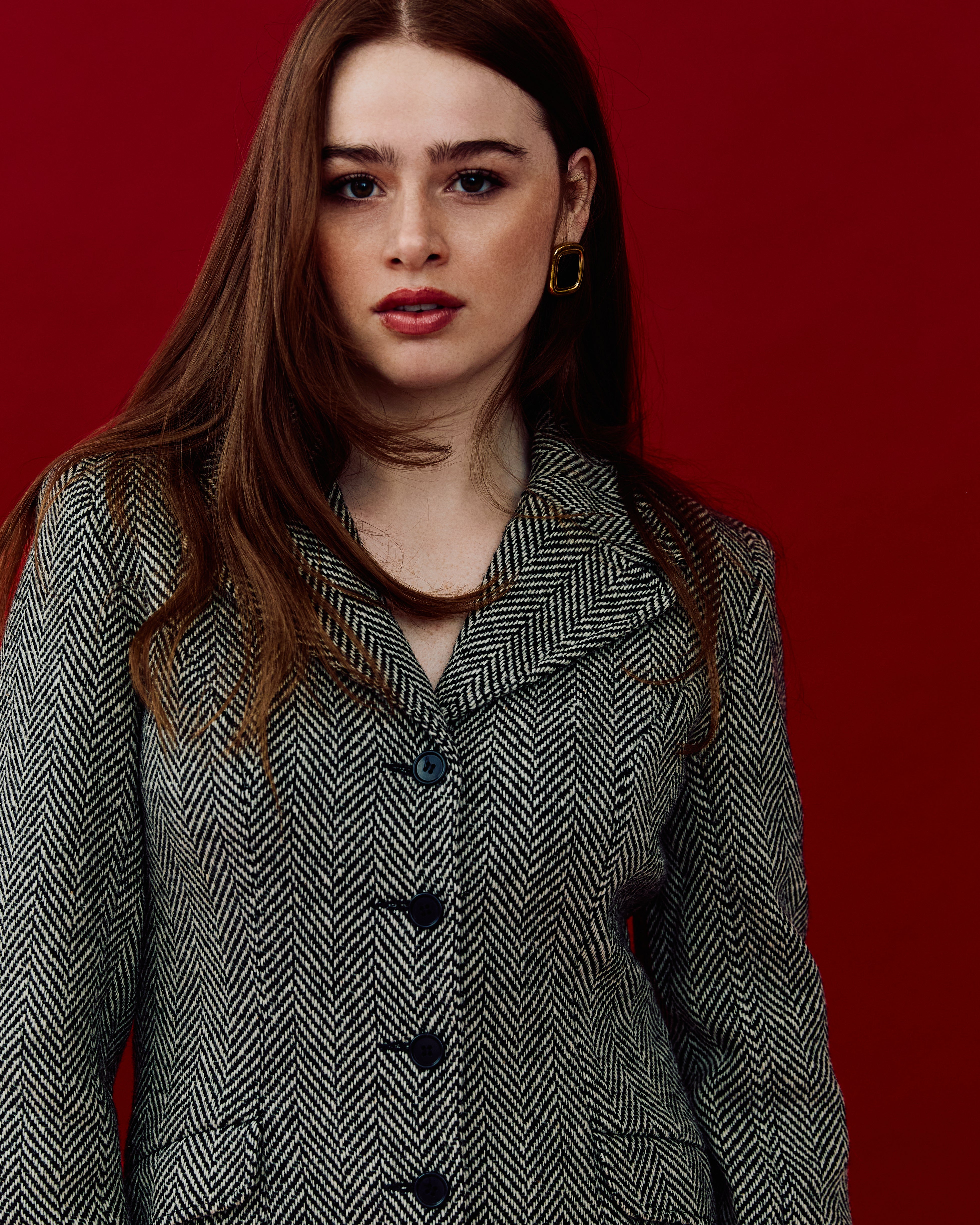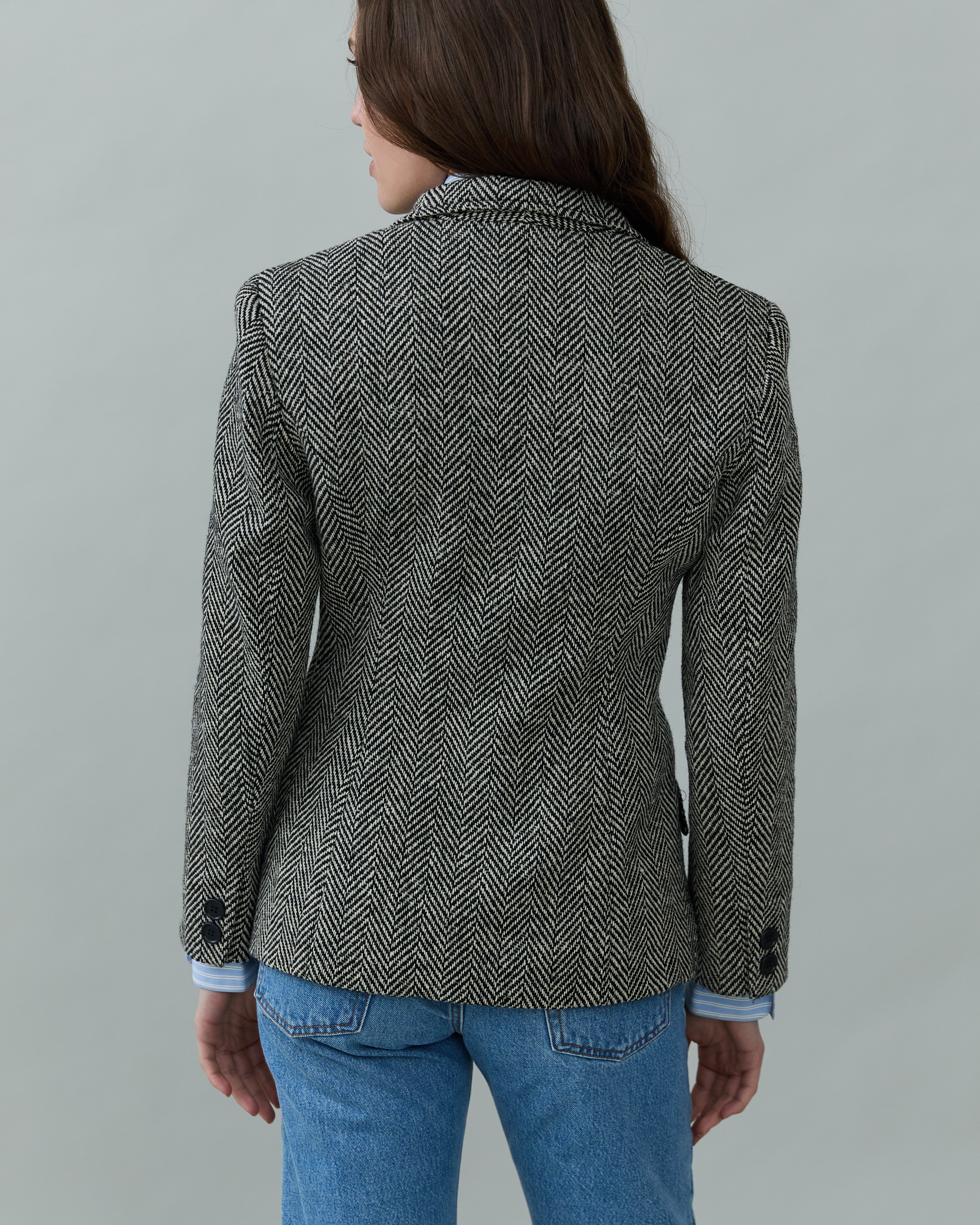 Vintage Fitted Waist Herringbone Blazer