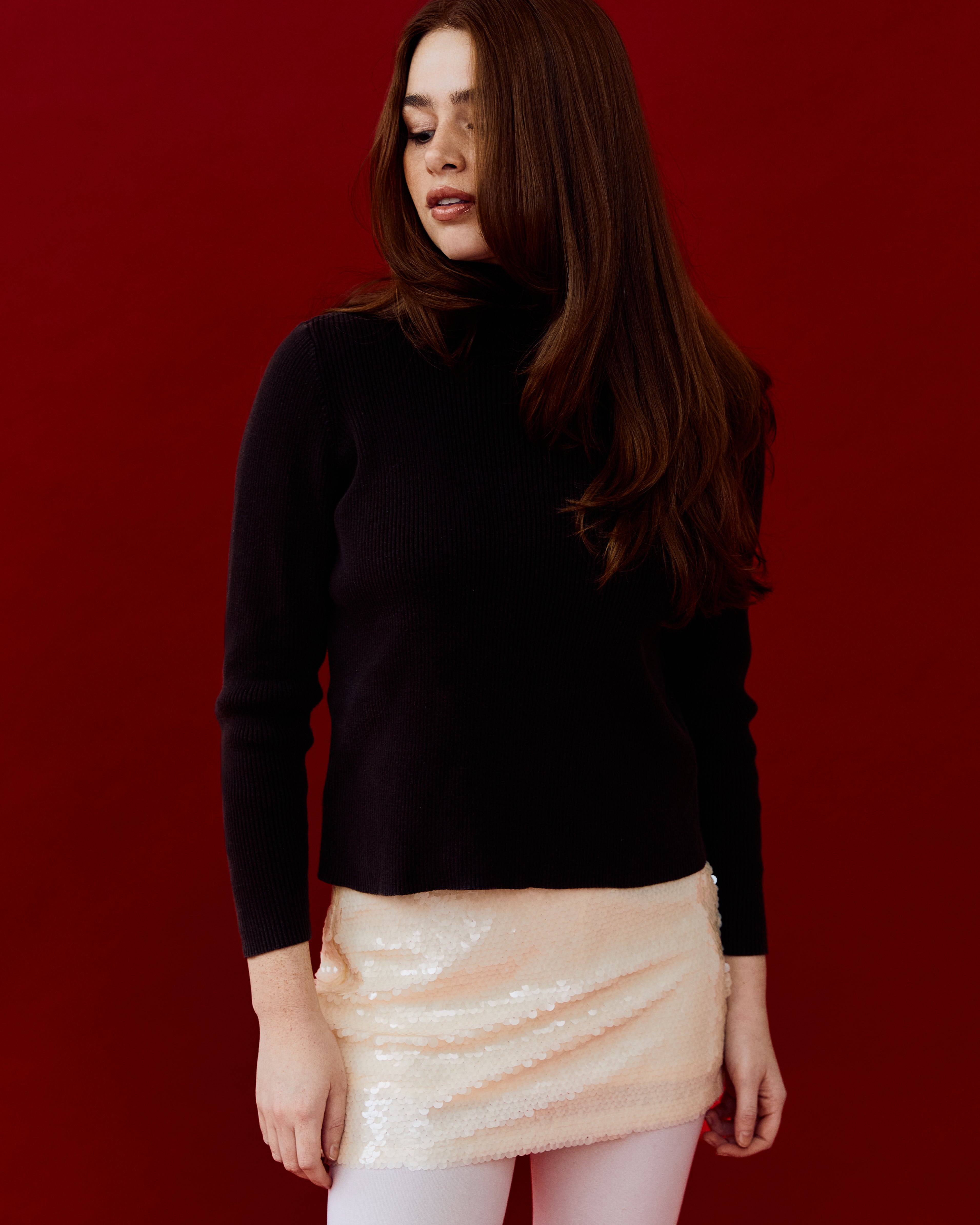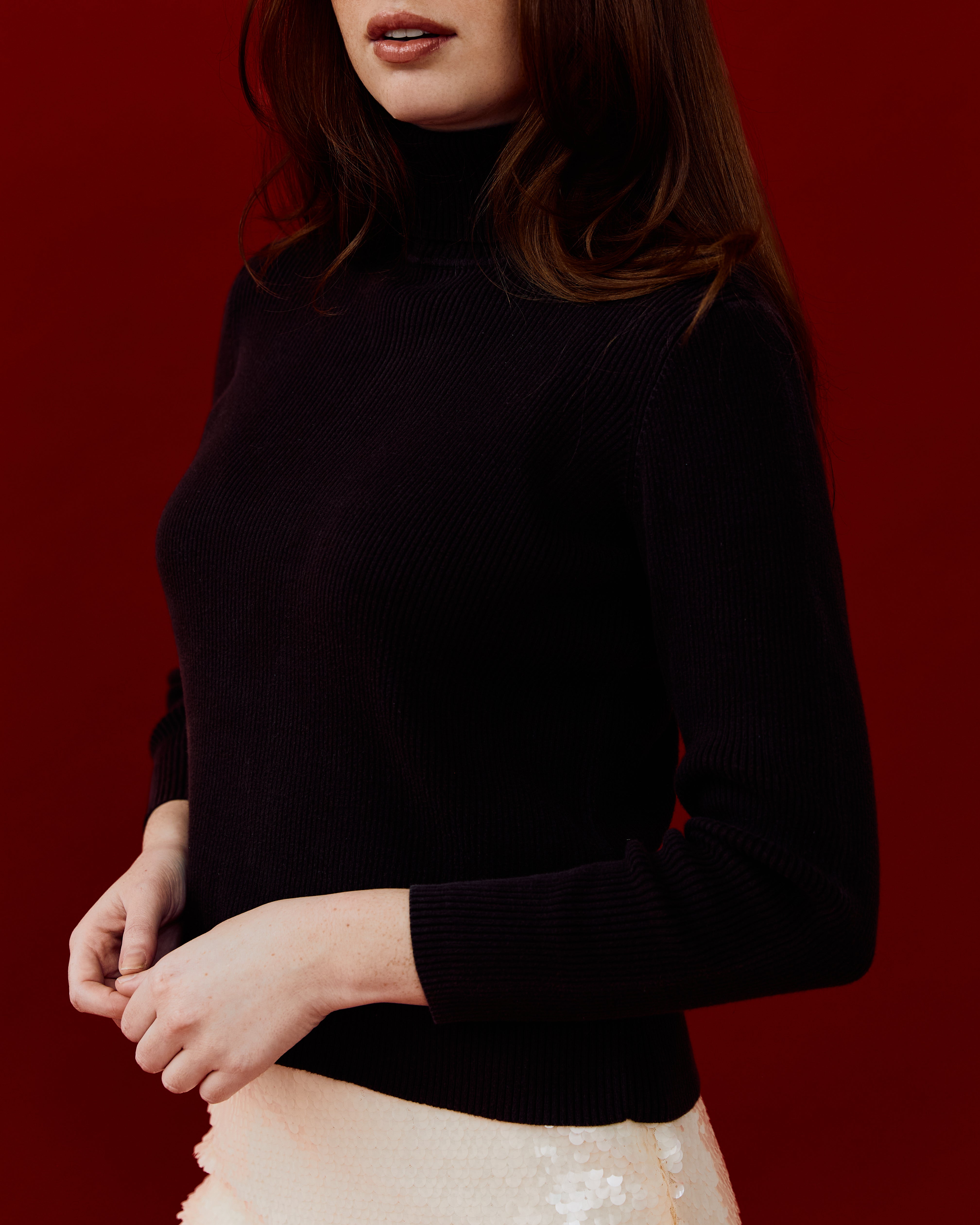 A wardrobe staple! This classic turtleneck comes in a ribbed material in dark brown. Very 90's minimalist.