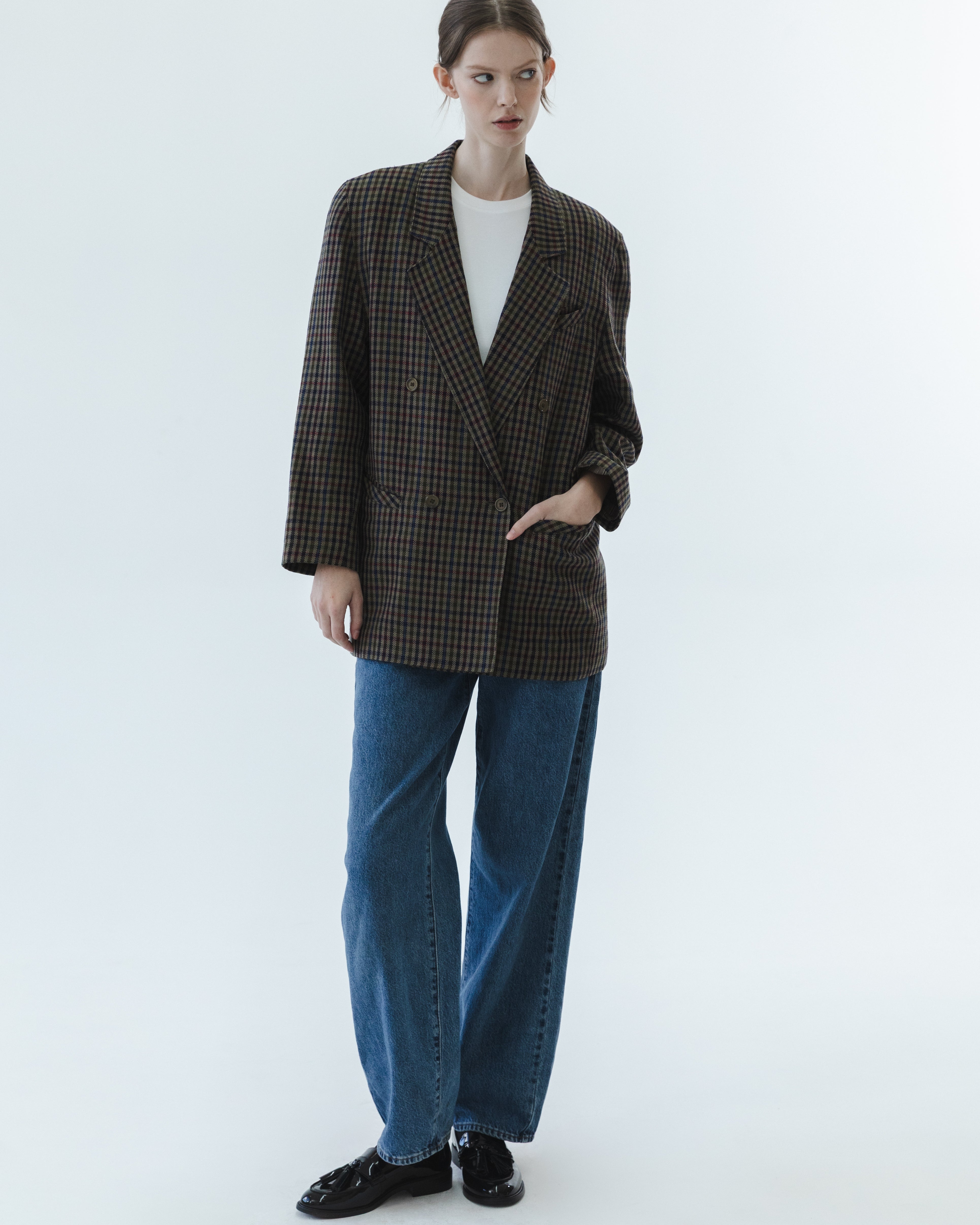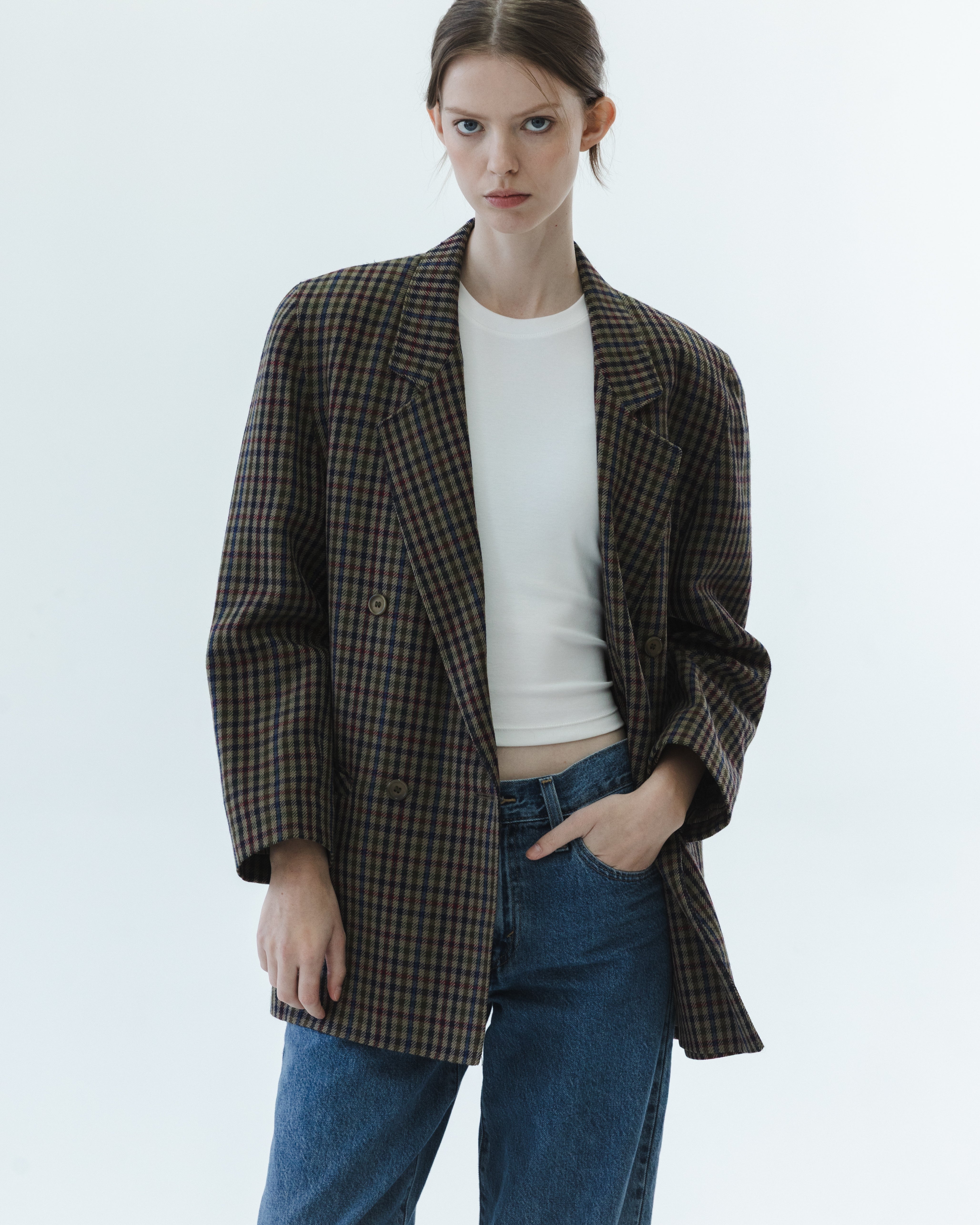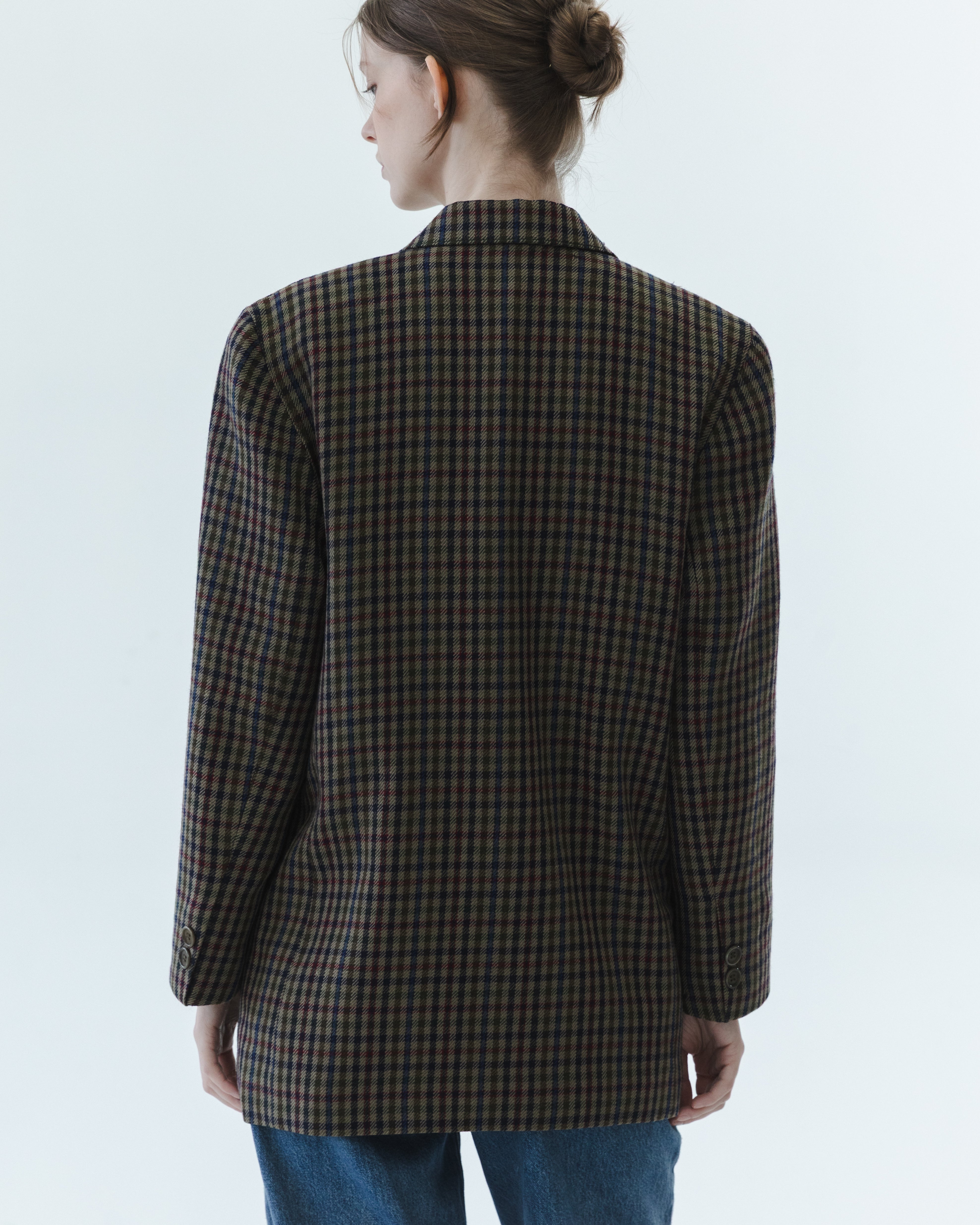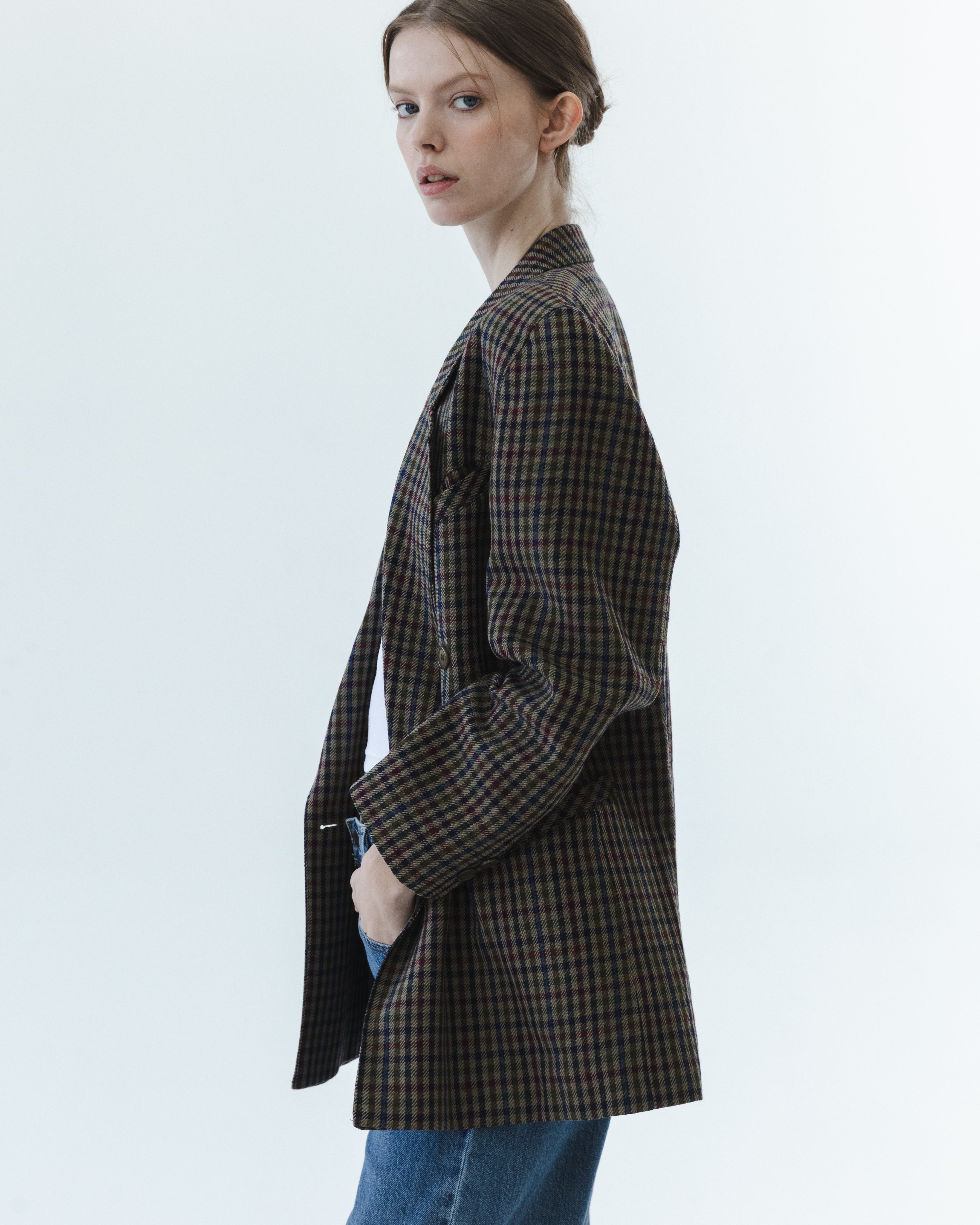 Super cute plaid blazer in a multi color plaid. Fully lined.