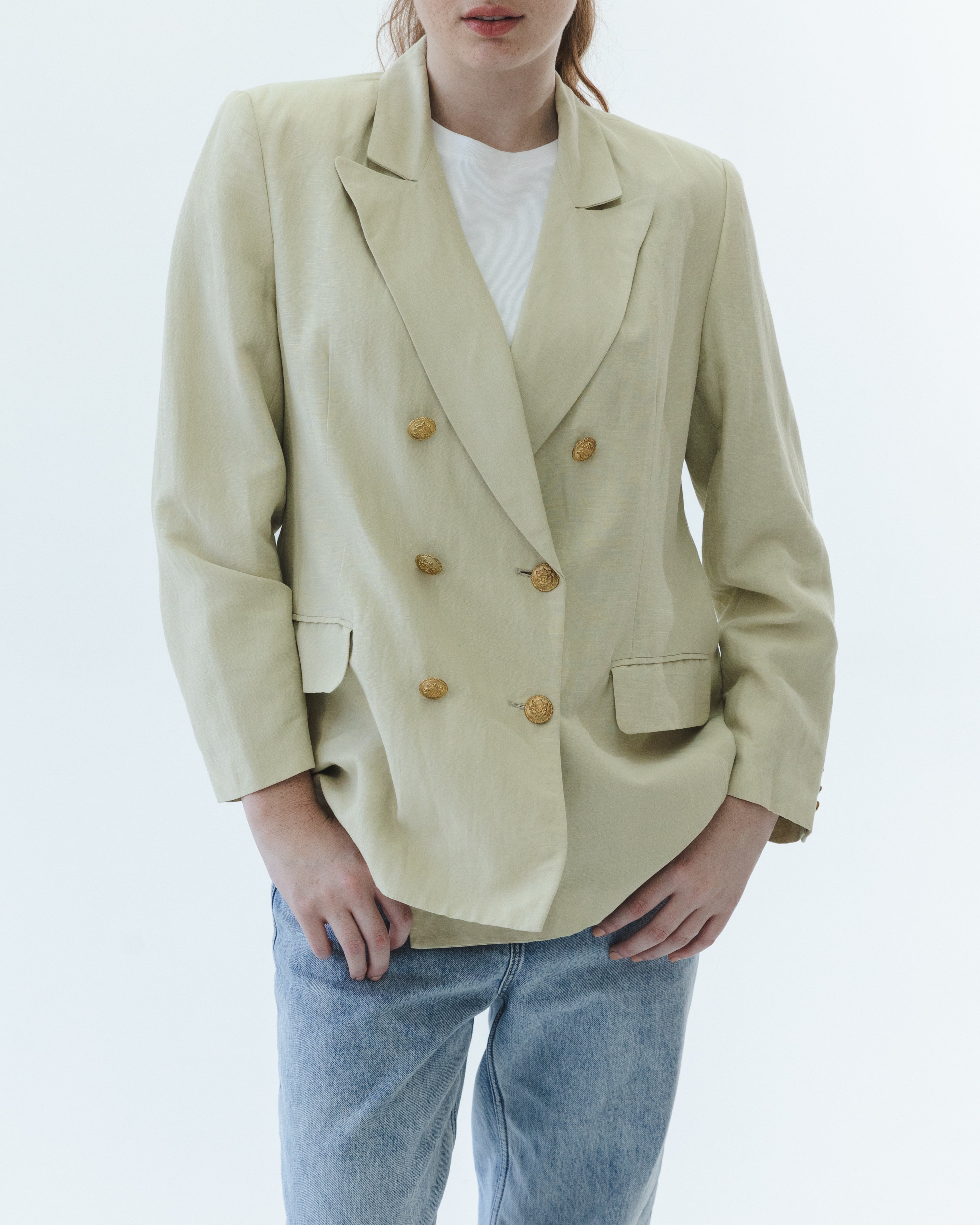 Super cute Princess Diana style blazer. Linen blend, featuring gold buttons.