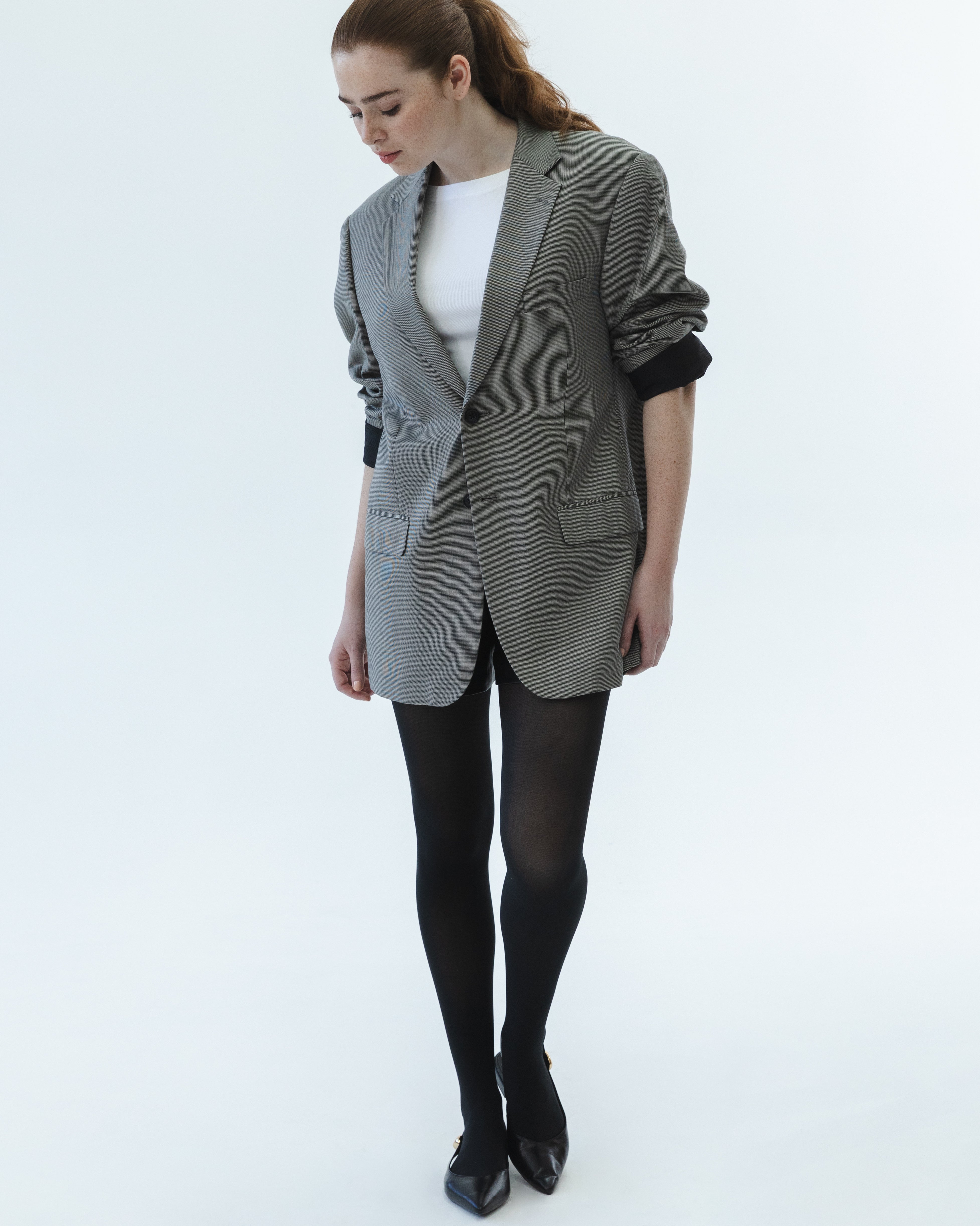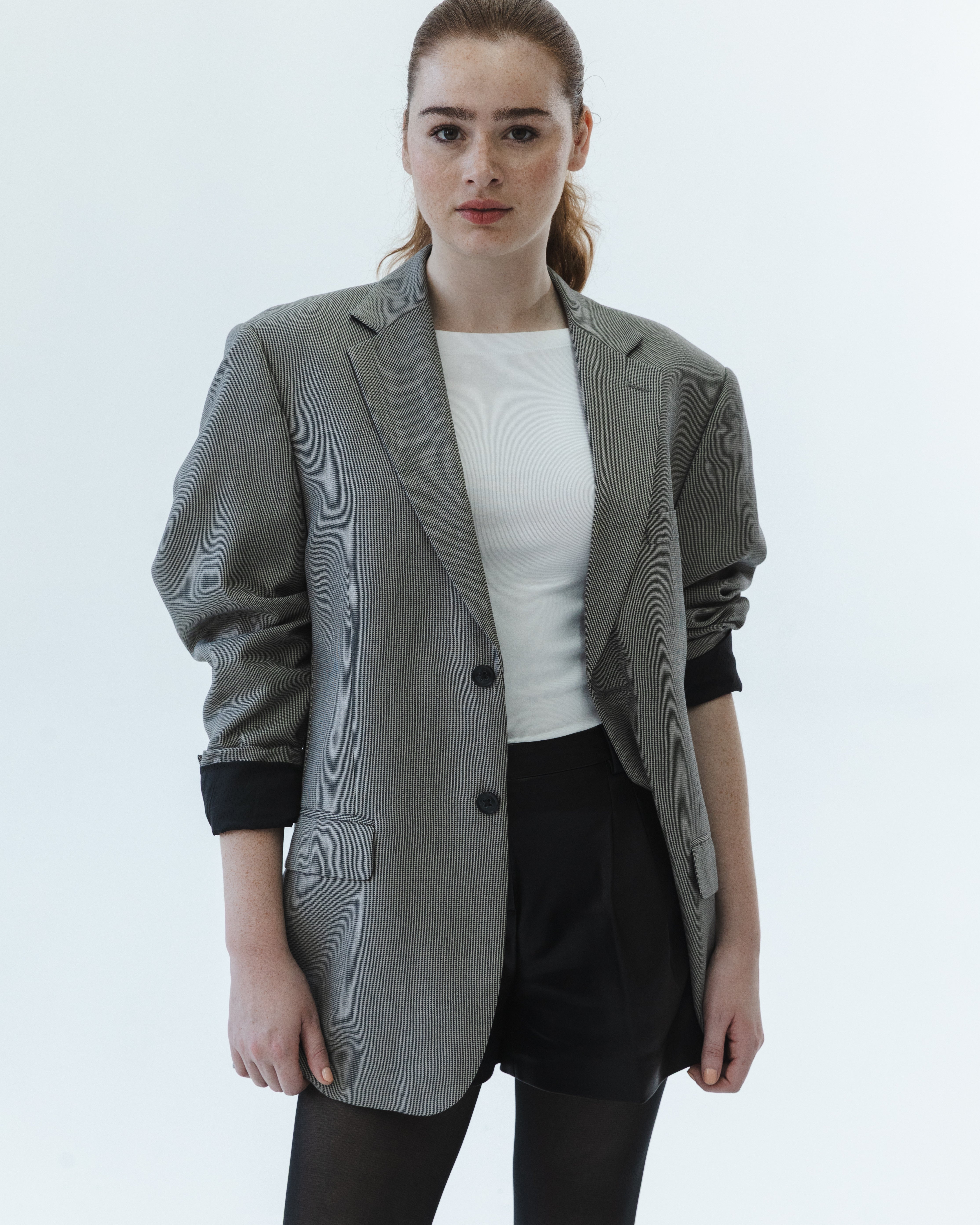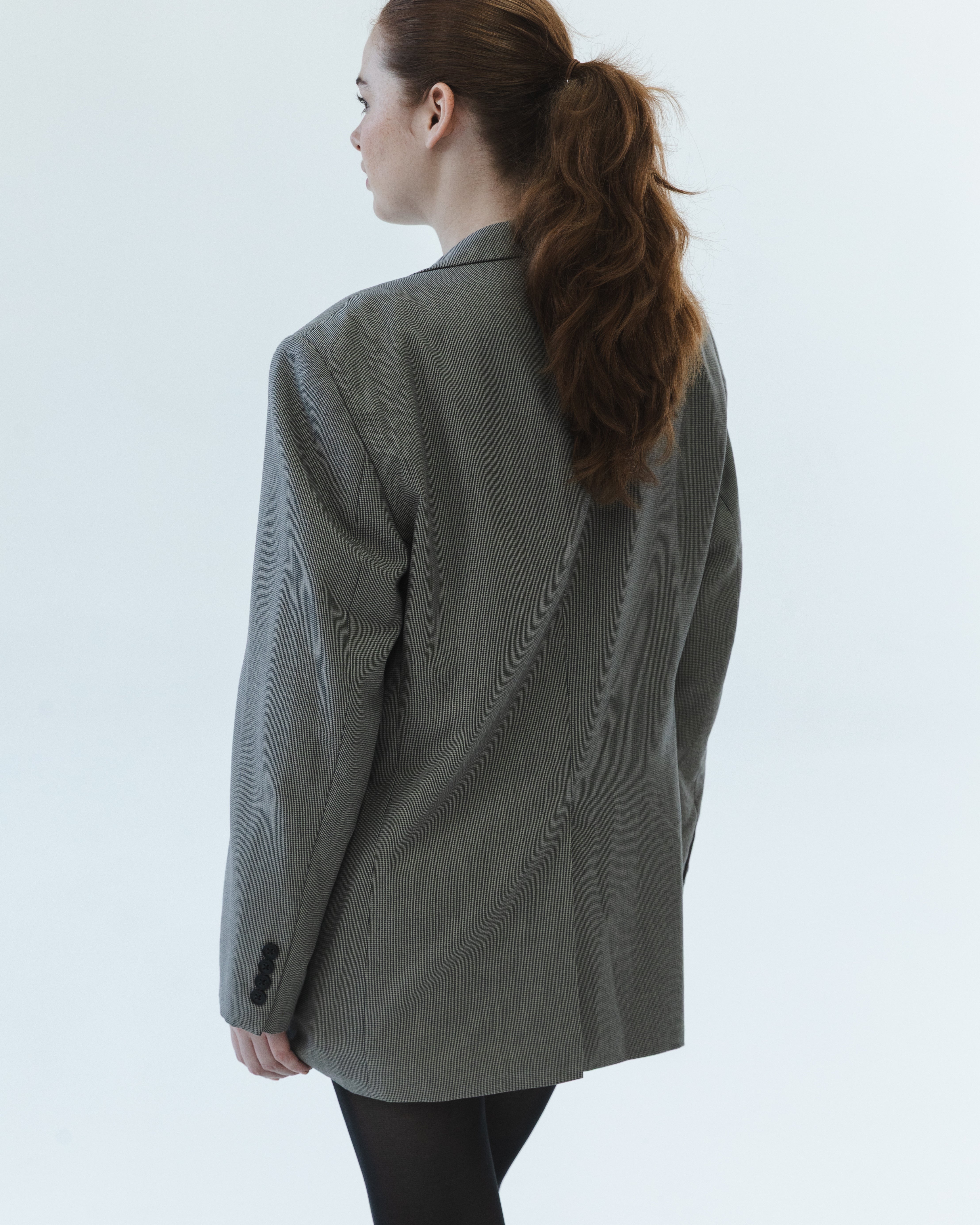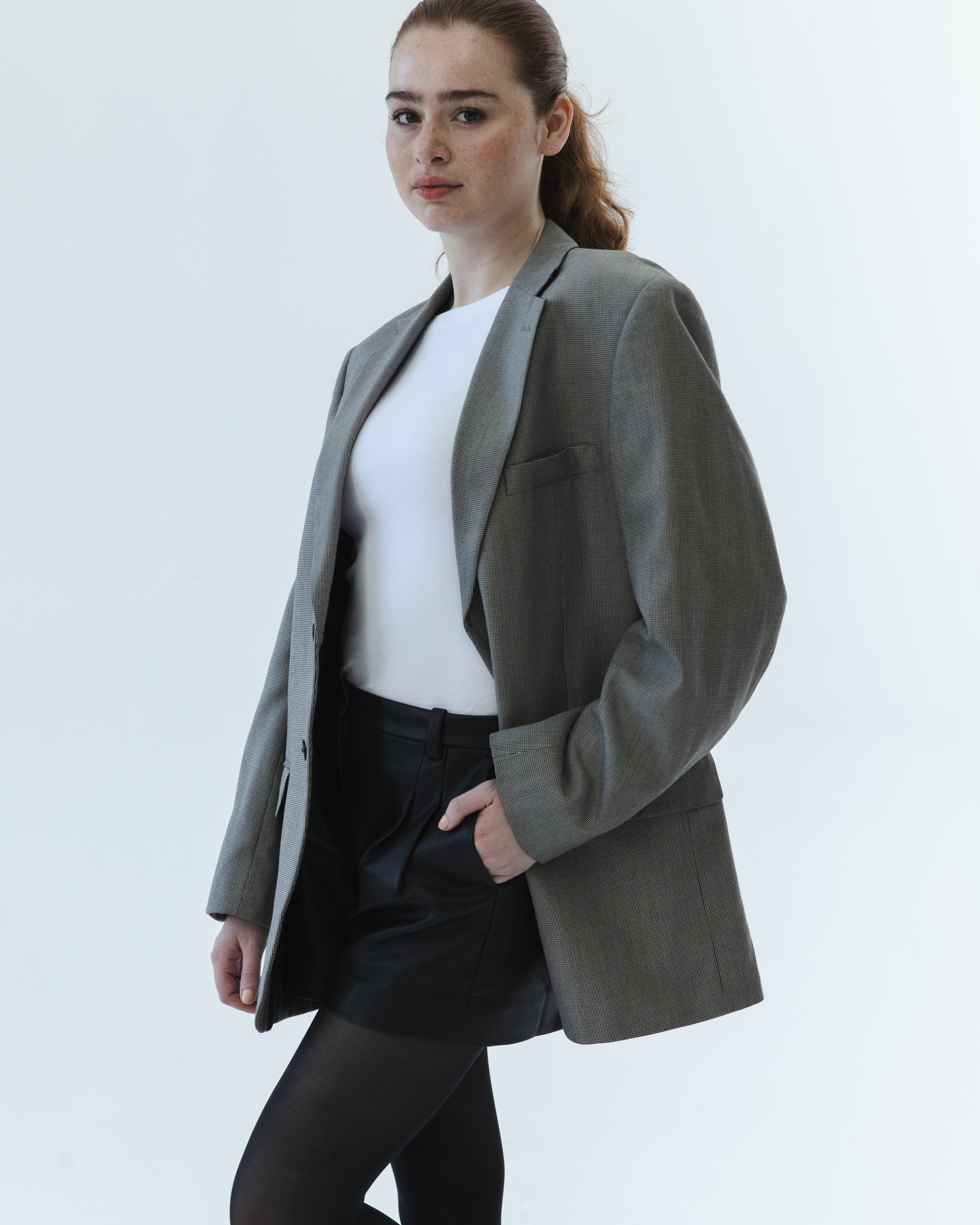 A timeless shape in a timeless pattern of black and white micro plaid.