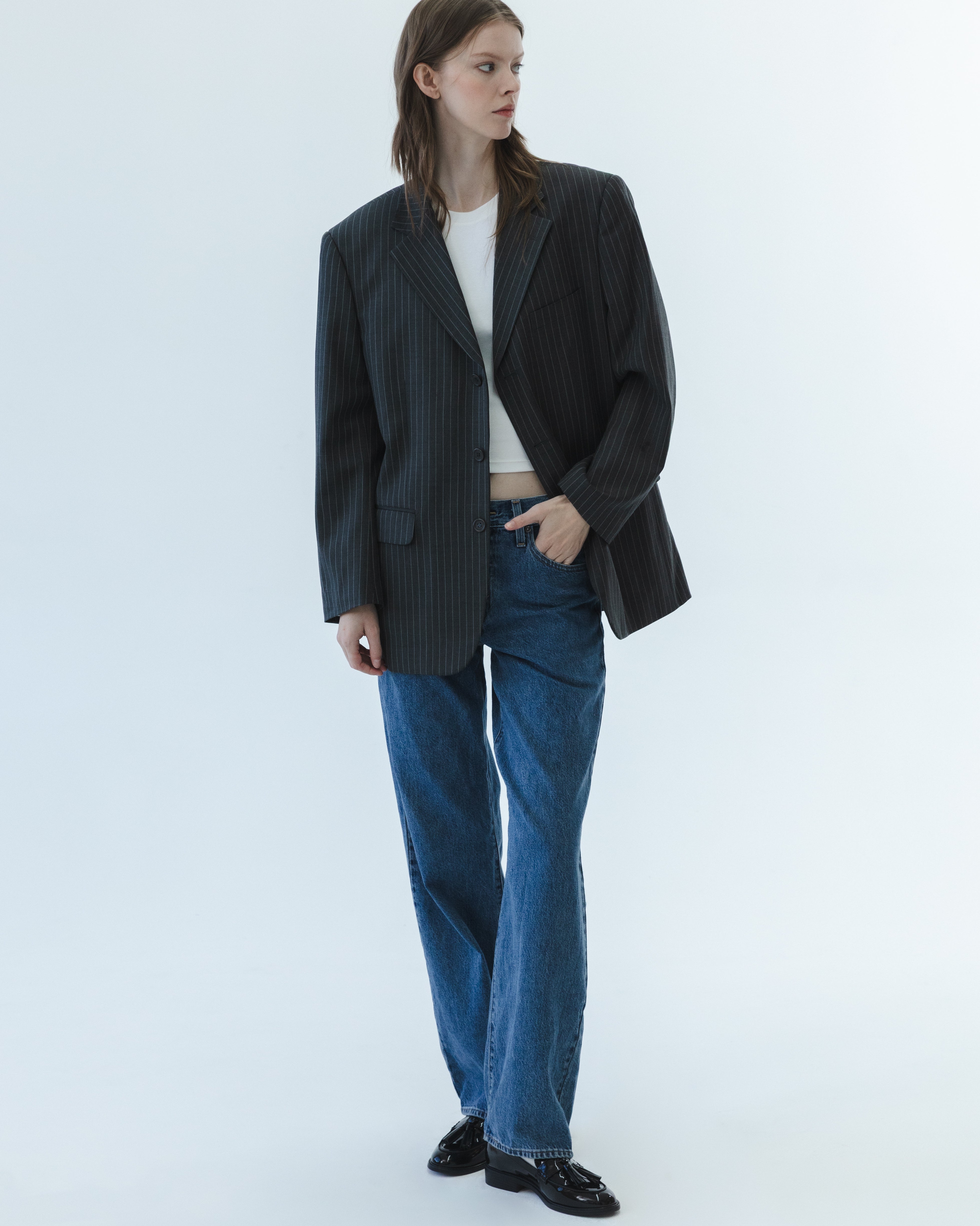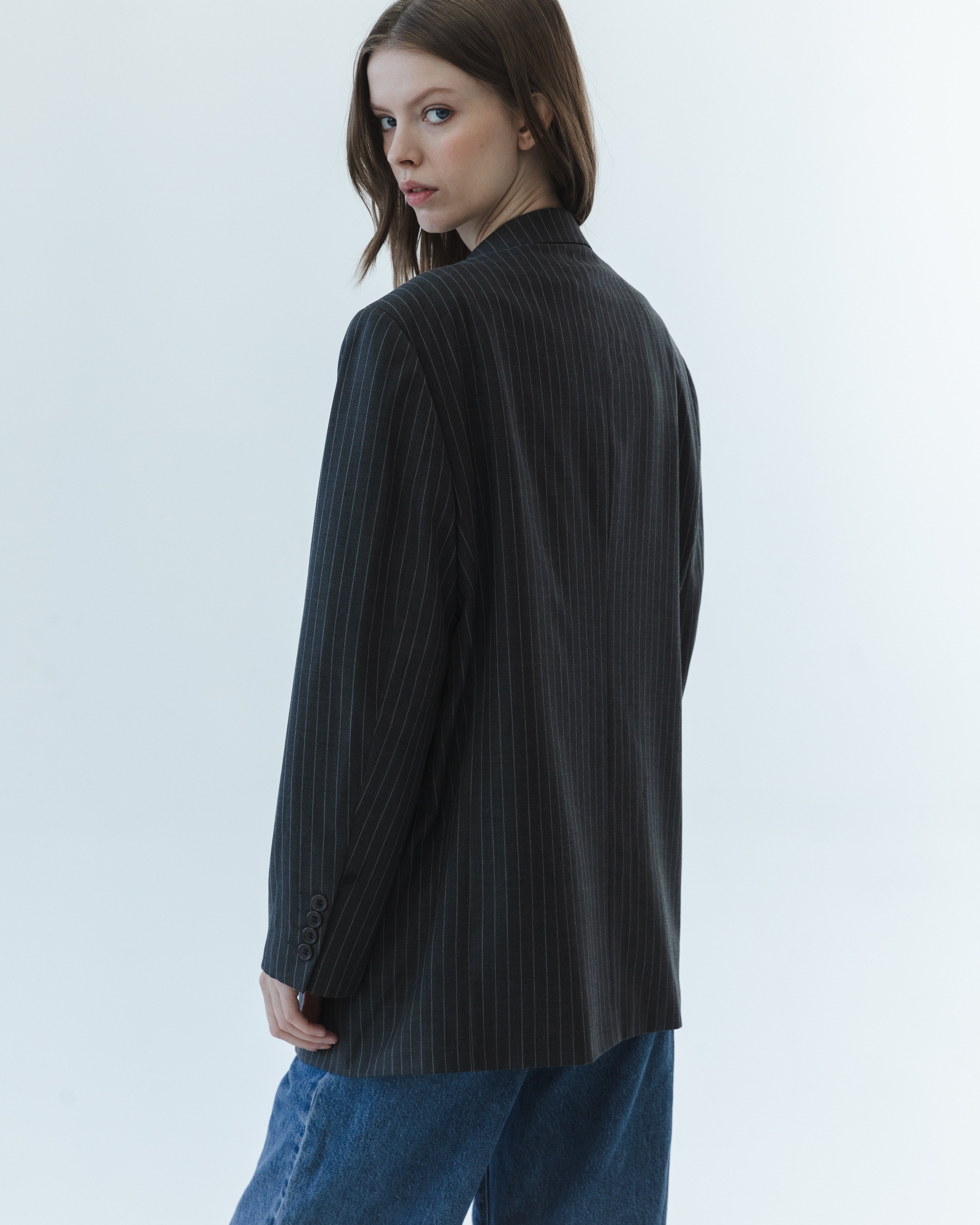 Classic Oversized Blazer in Dark Gray Pinstripe